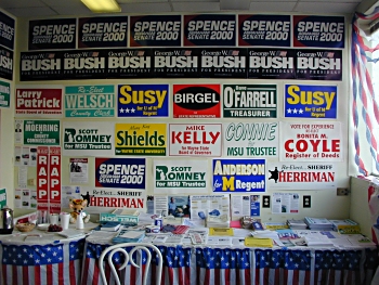 We are making signs, campaign literature and election information available to area voters. As usual, we are always in need of volunteers. If we could get people to volunteer 4 hours of their time a week, we can open both offices for longer hours and have the most impact. Please call Mary P. Smith (739-2364) or Maureen Rudel (362-4747) for further information or to sign up to help.